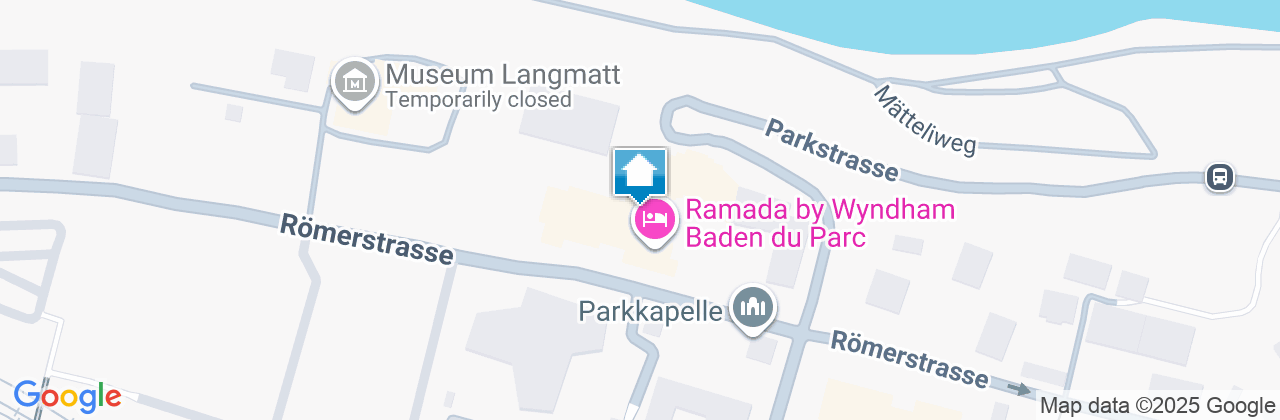 Ramada by Wyndham Baden Hotel du Parc Baden Teilen Share Tweet E-Mail Pin Share Bilder Informationen Ausstattung Tagungsräume Bewertungen Google Maps Karte Route berechnen Anreise Google Maps