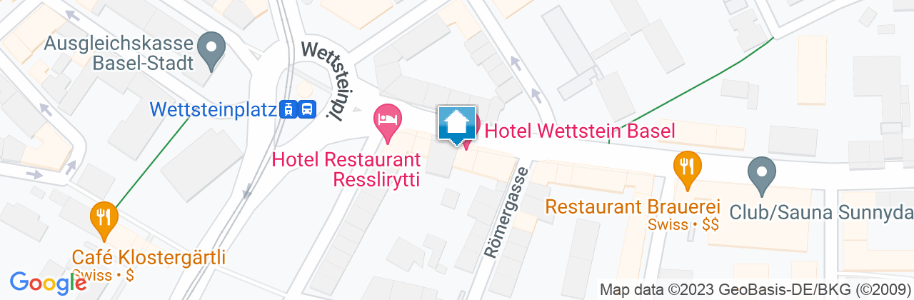 Im Herzen von Kleinbasel, in unmittelbarer Nähe zum Rhein und der Altstadt gelegen, befindet sich das Hotel Wettstein. Dank seiner Nähe zum Messe- und Kongresszentrum sowie dem Kunstmuseum empfiehlt sich das Hotel mit seinem familiären Ambiente und idyllischen Garten für Privat- und Geschäftsreisen.