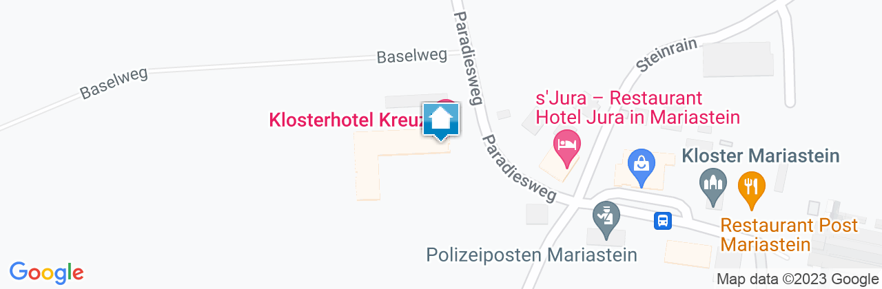 Mitten in der wunderschönen Landschaft Mariasteins bietet das Klosterhotel Kreuz wohltuende Ruhe, Erholung und Abstand vom Alltag. Dieser Ort bietet den perfekten Rahmen für Meetings, Seminare und Events. Das ehemalige Pilgerhaus befindet sich inmitten eines idyllischen Parks und ist vier Gehminuten vom Kloster Mariastein sowie 15 km von Basel entfernt. Die Gastgeber verwöhnen ihre Gäste mit herzlicher Gastfreundschaft und Liebe zum Detail.