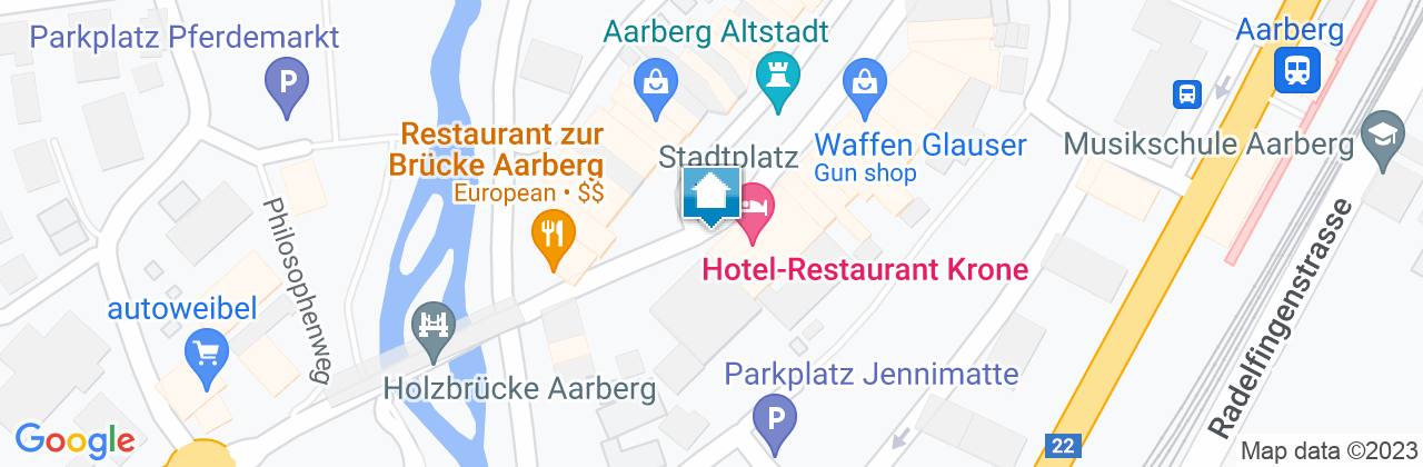 The hotel is located in the center of town ("Stadtplatz"). Motorway exit Lyss-Süd, direction Aarberg. The hotel is a 5-minute's walk from Aarberg railway station. Free parking places behind the hotel.