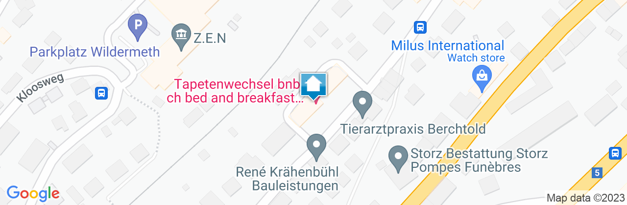 Im Einfamilienhaus nähe Stadt (10 Min. zu Fuss oder direkte Busverbindung im 15 Minutentakt) bieten sie im B&B „Tapetenwechsel“ 4 Schlafplätze (1Doppelbett-, 2 Einzelbetten) an. Das Gästezimmer verfügt über ein eigenes Badezimmer mit Dusche, reichhaltiges Frühstück inbegriffen.