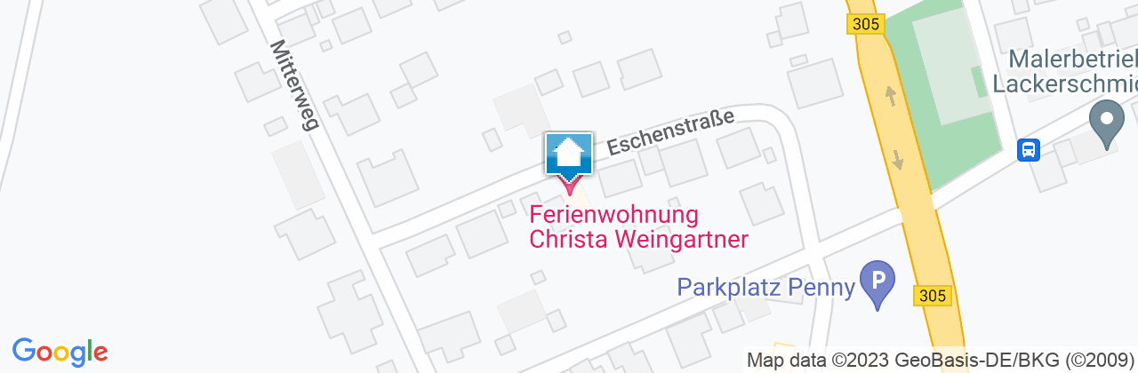 Von der BAB 8 kommend die Ausfahrt Bernau nehmen, geradeaus über die große Kreuzungin dieRottauer Straße fahren, und dieser bis zum Ortsende folgen. Am Ortsende biegen Sie rechts in die Ulmenstrasse ein. Danach sofort wieder rechts in die Eschenstraße fahren. Sie haben Ihr Ziel nach ca. 100 m auf der linken Seite erreicht. Dort befindet sich die Ferienwohnung Christa.