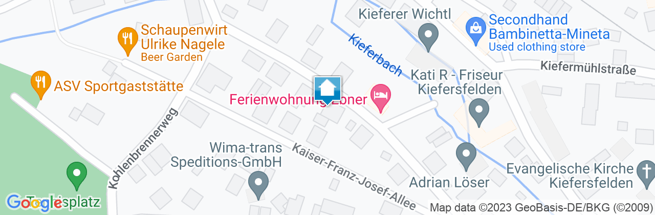 Inntal Autobahn Rosenheim - Innsbruck. Ausfahrt Kiefersfelden. Im Ort an der 1. Ampel rechts - in die Thierseestrasse einbiegen dann 1. Strasse links in die Sportplatzstrasse. Rechts halten in die Kohlstattstrasse Haus Nr. 14Richtlinien