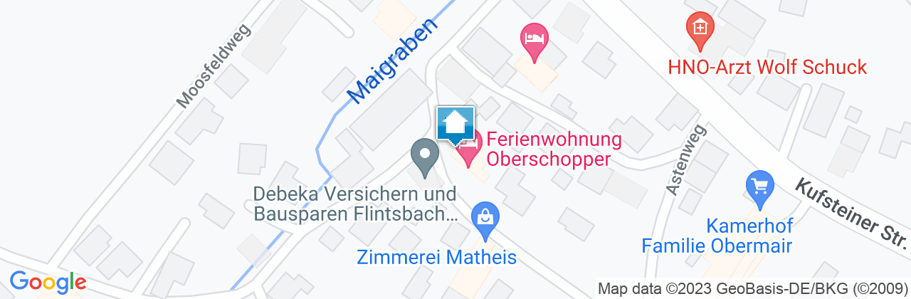 Mit dem PKW:Autobahn A8 München Richtung Salzburg. Am Inntaldreieck auf die Autobahn A94 Richtung Innsbruck & Brenner. Ausfahrt Brannenburg - Flintsbach, dann links abbiegen auf die Nußdorfer Str., nach 50 m links abbiegen in Richtung Flintsbach. Dem Straßenverlauf auf der Vorfahrtstraße folgen, unter der Brücke durch, an der Gabelung links halten, vorbei an der Kirche auf der Kirchstraße. Immer geradeaus fahren, an der Sparkasse vorbei. An der Hauptstraße Kufsteiner Straße links abbiegen und nach ca. 450 m rechts in die Maiwandstraße abbiegen (nach der Bushaltestelle). Der Maiwandstraße folgen. Nach ca. 350 m und einer Linkskurve erreichen Sie das Zielobjekt am Petersbergweg 1 auf der linken Seite. Der Eingang der FeWo befindet sich auf der linken Seite des Hauses.
