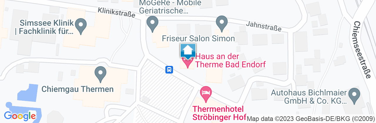 Autobahn München - Salzburg, Ausfahrt Rosenheim immer in Richtung Traunstein, in Bad Endorf an der Kirche rechts vorbei und durch den Ort durchfahren. Hinterm Mercedes Autohaus rechts abbiegen in die Kurstraße. Am Ende wieder rechts abbiegen in die Ströbinger Straße. Autobahn Salzburg - München, Ausfahrt Bernau, über Prien und Rimsting nach Bad Endorf bis zum Mercedes Autohändler, dort links abbiegen in die Kurstraße. Am Ende wieder rechts abbiegen in die Ströbinger Straße. Zug: Strecke München - Salzburg, Station Bad Endorf. Bahnabholung nach Absprache. Fußweg 10 Minuten: links gehen bis zum Bauernwirt, rechts um die Wirtschaft herum gehen und der Jahnstraße folgen bis in die Ströbinger Straße (angrenzend).Richtlinien