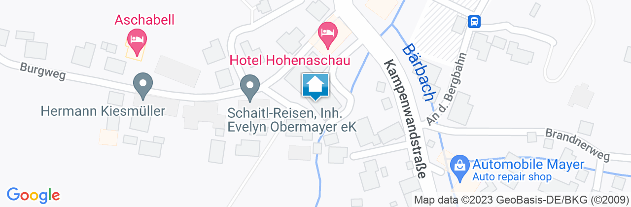 Von Frasdorf kommend: vorbei an der Ortseinfahrt Aschau i.Ch., geradeaus auf der Rosenheimer Straße, an der Tankstelle vorbei. Folgen Sie dem Straßenverlauf ca. 2 km durch den Ort in Richtung Kampenwandseilbahn und Schloss Hohenaschau, unterhalb Schloss Hohenaschau in einer starken links Kurve liegt auf der rechten Seite das Haus Burg und Haus Hohenaschau.