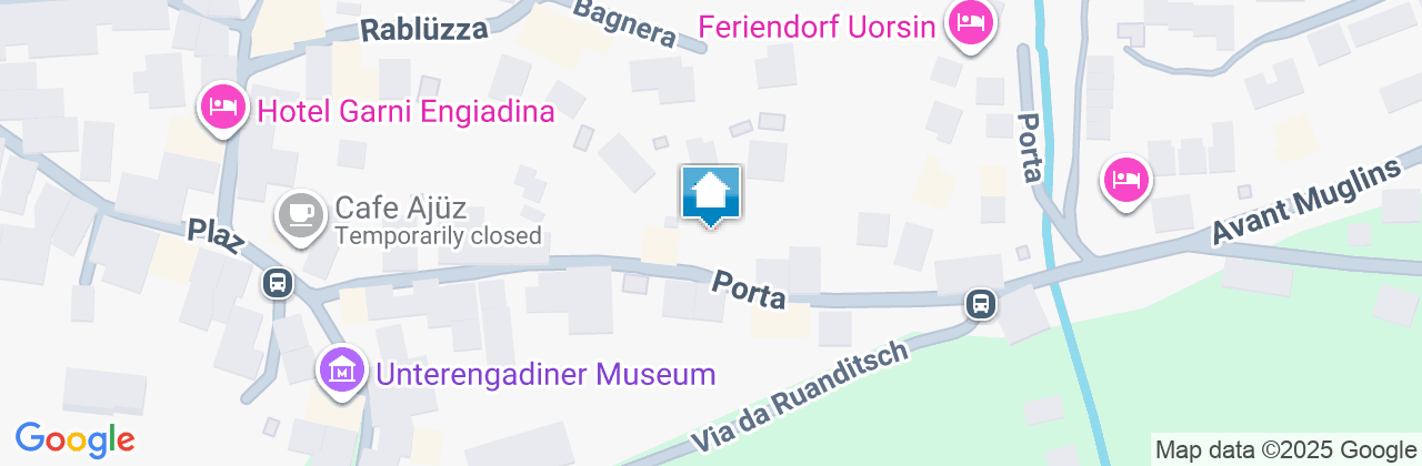 Im 2006 erbautes Einfamilienhaus an ruhiger, idyllischer und dennoch zentraler Lage mit schöner Aussicht. In der Nähe des alten Dorfkerns (Scuol sot), nur wenige Gehminuten vom Erlebnisbad entfernt. Wohnung mit eigenem Gartensitzplatz. Gemütliche 2 1/2 Zimmerwohnung mit Parkettboden, Bodenheizung, mit offener Küche, Wohn-Esszimmer mit Sofabett, SAT-TV, Radio, Internetanschluss (WLAN), 1 Doppelschlafzimmer, Badezimmer mit Dusche/WC, mit eigenem separaten Eingang. Leiden Sie an einer Gluten- oder Laktoseunverträglichkeit? In der Nationalparkregion und in unserer Wohnung sind Sie bestens aufgehoben. Die Küche ist mit diversen Gewürzen, Öl und Essig, wie auch Zucker und Kaffee ausgerüstet, zudem steht Ihnen eine Nesspressokaffeemaschine mit Kapseln zur Verfügung.