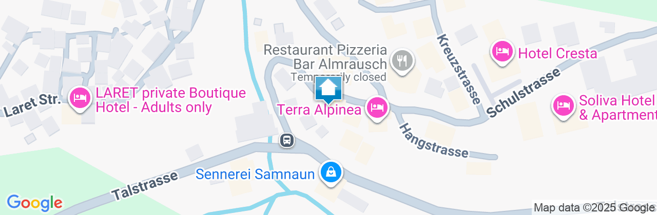 Gartenterrasse: Die Gartenterrasse hat zwei geschützte Sitzplätze, einmal mit Liegestühlen und einmal mit Tisch und Stühlen. So können Sie die herrliche Aussicht auf den Wald und die Samnauner Bergwelt geniessen.