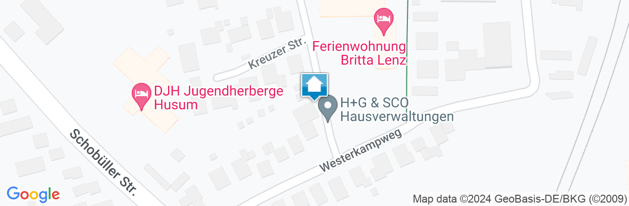 Die Ferienwohnungen Lenz liegen in einem Mehrfamilienhaus in einem Wohngebiet im nördlichen Teil von Husum. Die Entfernung zur Husumer Innenstadt mit Marktplatz, Hafen und vielfältigen Einkaufsmöglichkeiten beträgt ca. 2,5 km – ca. 25 Gehminuten. Den Husumer Bahnhof erreichen Sie nach ca. 3 km. Die Entfernung zur Nordsee und zur Badestelle Dockkoog beträgt ca. 4,5 km. Die nächste Einkaufsmöglichkeit ist ca. 800 m entfernt. Die Fahrzeit zur Messe Husum & Congress beträgt ca. 10 Minuten mit dem PKW. Weitere Angaben: Nichtraucher, PKW-Stellplatz ist in ca. 50 m Entfernung, (Garagen-Stellplatz auf Wunsch gegen eine Gebühr von 7,00 EUR pro Tag möglich), Abstellmöglichkeiten für Fahrräder, Waschmaschinennutzung ist gegen Gebühr möglich. In der Ferienwohnung 02 ist ein Hund bis zu einer Höhe von 30 cm gegen eine Gebühr von zzgl. 30,00 EUR erlaubt. In der Ferienwohnung 01 ist ein kleiner allergikerfreundlicher Hund auf Anfrage erlaubt. Katzen und andere Haustiere sind grundsätzlich nicht gestattet.
