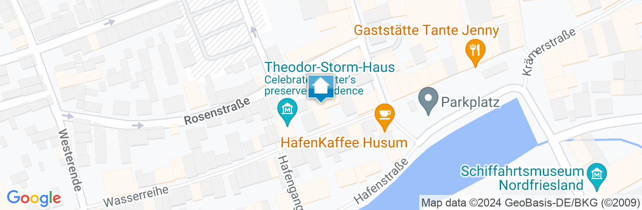 Die City-Ferienwohnung befindet sich in einem Mehrfamilienhaus zentral in der Husumer Innenstadt gelegen, direkt neben Theodor-Storm-Zentrum (Storm-Museum). Der Marktplatz und die Innenstadt sind in wenigen Gehminuten erreichbar. Die Nordsee und den Badestrand erreichen Sie nach ca. 3 km. Die Entfernung zum Husumer Bahnhof beträgt ca. 700 m. Die Fahrzeit zur Messe Husum & Congress beträgt ca. 10 Fahrminuten. Die Ferienwohnung ist einmal vom Eingang Wasserreihe erreichbar, dann wäre es das 3. Obergeschoss und einmal vom Eingang Rosenstraße, dann wäre es das 2. Obergeschoss.