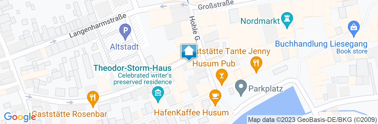 Die Ferienwohnung Ankerliebe liegt in einem historischen Mehrfamilienhaus in der Innenstadt von Husum. Der Hafen, der Marktplatz, vielfältige Einkaufsmöglichkeiten und Gastronomiebetriebe sind in wenigen Gehminuten erreichbar. Die Entfernungen zur Nordsee/Badestelle Dockkoog beträgt ca. 3 km. Der Husumer Bahnhof ist ca. 500 m entfernt. Die Fahrzeit zur Messe Husum & Congress beträgt ca. 10 Minuten.
