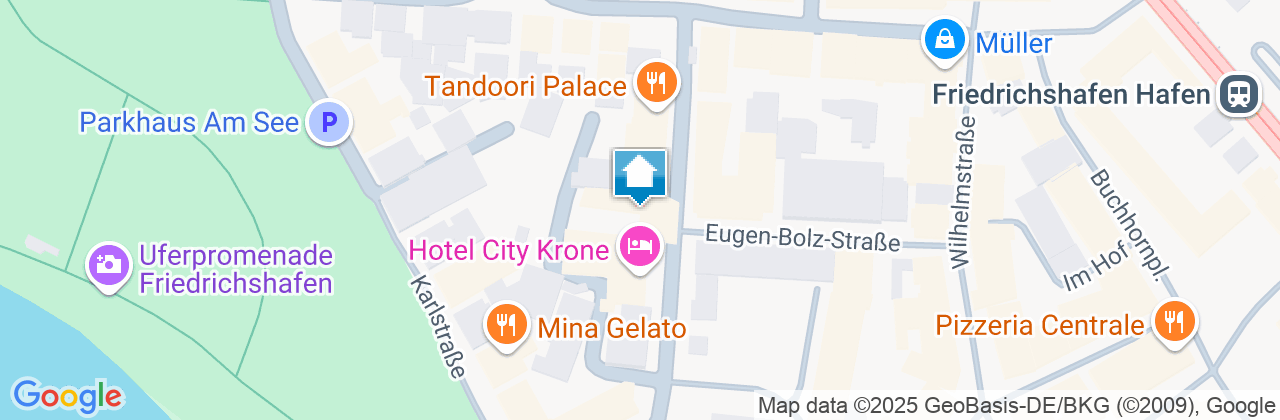 Das Hotel City Krone im Herzen der Altstadt - nur wenige Meter zum See und der Uferpromenade. In der Fußgängerzone trübt kein Verkehrslärm die Stille und bis zum Ufer des Bodensees sind es nur 100 Meter. Hier können Sie bequem Ihr Auto stehen lassen und zu Fuß die Sehenswürdigkeiten der Stadt entdecken. Bahnverbindung: IC/ICE Anschluss in Ulm, ab Ulm mit dem InterRegio oder E-Zug nach Friedrichshafen; weitere Anschlüsse in Richtung Lindau und Radolfzell Flugverbindung: Flughafen Friedrichshafen (FDH) Durch Linienflugverbindungen ab/zu allen wichtigen Flughäfen ist Friedrichshafen an das internationale Flugnetz angeschlossen Verbindung Autofähre: Romanshorn/Schweiz - Friedrichshafen Konstanz - Meersburg In Friedrichshafen: Ausschilderung Fußgängerzone Altstadt Das Hotel City Krone in Friedrichshafen am Bodensee. Wir machen Ihren Bodenseeurlaub zum Erlebis, Ihre Reise nach Friedrichshafen zum Event. Keine einfache Unterkunft, sondern ein hervorragendes Hotel für Reisen, Urlaub, Essen und Trinken, Events, Unterkunft, Zimmer, Wellness, Wohlfühlen, Messen, Termine, Urlaub am Bodensee. Viel Spass!!!