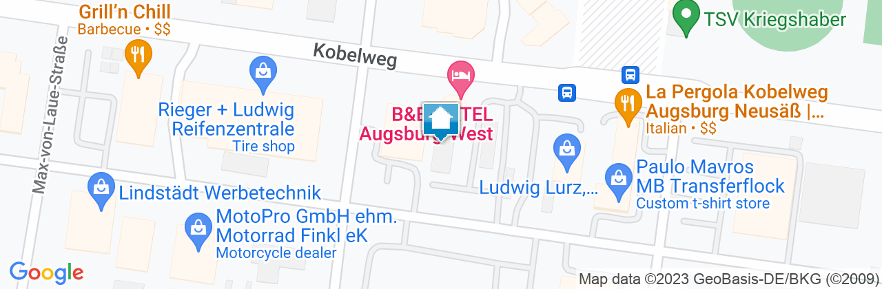 Das B&B Hotel Augsburg-West ist nur 4 km vom Zentrum und 4,5 km vom Hauptbahnhof entfernt sowie verkehrsgünstig zur Autobahn A8 gelegen. Unsere 124 modern eingerichteten Einzel- und Doppelzimmer sind die ideale Unterkunft für Städte- und Geschäftsreisende. Kostenlose Extra wie WLAN, Sky-TV, schallisolierte Fenster und ein hoteleigener Parkplatz bieten unseren Gästen zusätzlichen Komfort. Ein Snackautomat, ein praktisches Grab&Go Frühstück sowie unsere "Everyone´s" Bar in der Hotellobby sorgen für das leibliche Wohl.Ausstattung & Information