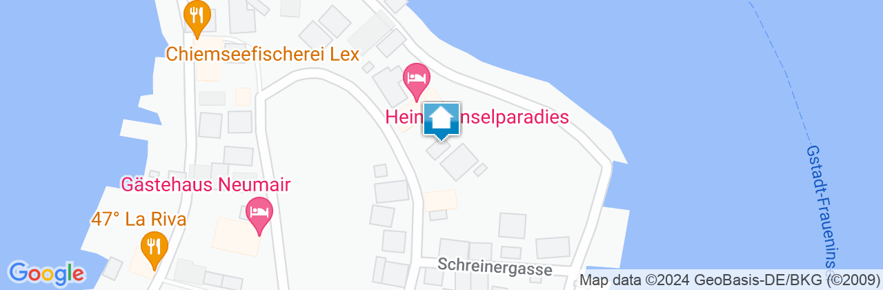 Bitte beachten Sie, dass die Ferienwohnung Inselglück auf einer autofreien Insel im Chiemsee liegt und nur mit dem Schiff erreichbar ist. Das Aufo kann gegen eine Gebühr in Gstadt stehenbleiben. Stornierungsbedingungen: Absage bis 14 Tage vor Reisebeginn kostenfrei möglich, bis 7 Tage vor Reisebeginn ist die Hälfte des Betrages zu zahlen, danach der volle Betrag. Die genannten Preise sind zuzüglich Kurbeitrag in Höhe von: Personen ab 16 Jahren = 2 EUR. Schwerbehinderte Personen mit 80 bis GdB 99% ab 16 Jahren = 1 EUR. Kinder und Jugendliche 7 bis einschl. 15 Jahren = 1 EUR. Schwerbehinderte Kinder und Jugendliche mit 80 bis GdB 99%; 7 bis einschl. 15 Jahren = 0,50 EUR. Kinder bis einschl. 6 Jahren | Schwerbehinderte Personen mit GdB 100% und deren Begleitpersonen | Geschäftsreisende = 0 EUR