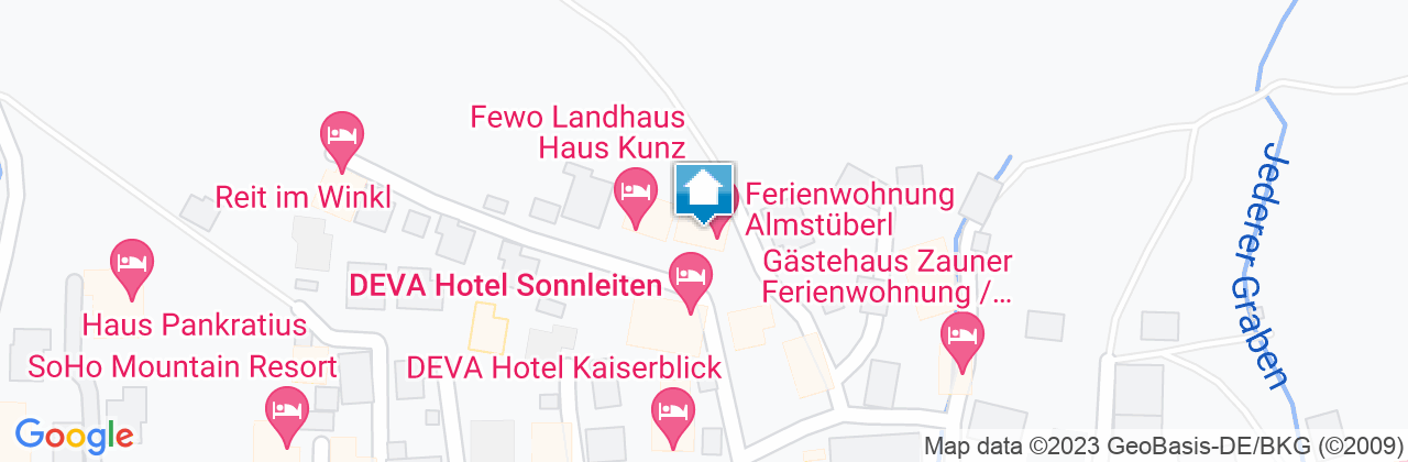 Umliegend befinden sich zudem die Skigebiete Hochkössen (10 Min.), Sankt Johann (25 Min.), Wilder Kaiser (30 Min.), Fieberbrunn/Skigebiet Saalbach-Hinterglemm (30 Min.), Waidring (30 Min.) und Kitzbühel (45 Min.).