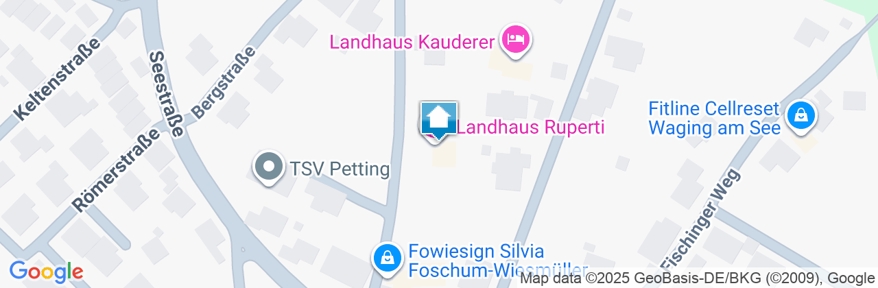 A8 Ausfahrt 112 Traunstein/Siegsdorf auf B306 in Richtung Traunstein. Nach 6 km im Kreisverkehr zweite Ausfahrt (Tunnel Ettendorf/B304). 100 m nach Tunnelausfahrt rechts auf ST2105 nach Waging. Nach 9 km links in die Martinstraße (bei Lidl). Nach 100, rechts in die Weixlerstraße. Am Ende der Straße nach links in die Seestraße. Nach 200 m rechts in die Kastanienallee.