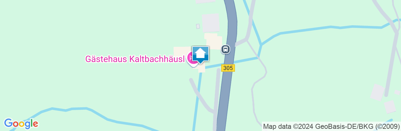 Autobahn München- Salzburg bis Ausfahrt Traunstein/Siegsdorf, weiter auf der B306 Richtung Berchtesgaden über Inzell, Weißbach bis Unterjettenberg. Von dort auf der B305 nach Ramsau,vorbei am Gasthof WachterlbisGasthof "Baltram", hier nach 300mrechts unterhalb der Straße ist das "Kaltbachhäusl".