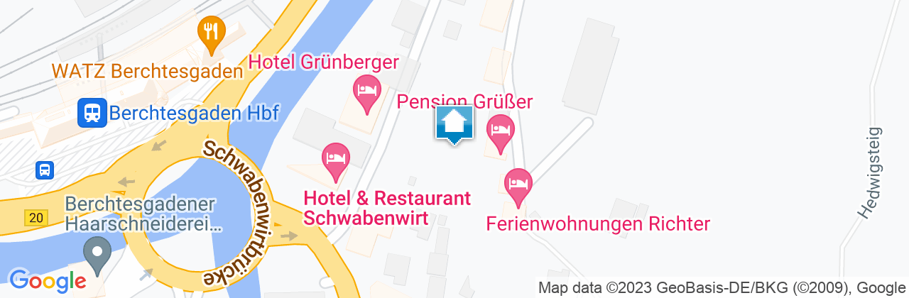 Die Anfahrt erfolgt über die A8 bis Ausfahrt Bad Reichenhall. Anschließend geht es auf der B21 bis nach Bad Reichenhall und dann weiter auf der B20 über Bayrisch Gmain, Hallthurm und Bischofswiesen nach Berchtesgaden. Wenn Sie eine Vignette für Österreich haben , fahren Sie bitte auf der A 8 bis Ausfahrt Salzburg Süd und gerade durch bis Berchtesgaden.Richtlinien