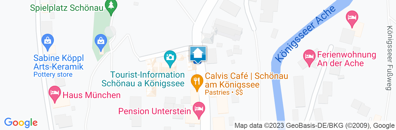 Sie fahren von der A8 München-Richtung Salzburg. Nehmen Sie die Ausfahrt Bad Reichenhall. Das ist die letzte Ausfahrt vor der österreichischen Grenze. (Bei Weiterfahrt VIGNETTENPFLICHT!) Von Bad Reichenhall auf der B20 den Schildern Richtung Berchtesgaden folgen.Sie durchfahren dabei die Ortschaften Bad Reichenhall, Bayerisch Gmain, Hallthurm und Bischofswiesen und kommen schließlich zum großen Kreisverkehr am Bahnhof Berchtesgaden.Von dort die Ausfahrt Richtung Königssee auf die B20 nehmen, am Ortsausgang nach rechts unten in die Untersteinerstraße abbiegen. Sie sind jetzt im Gemeindegebiet Schönau am Königssee. An der Kirche vorbei fahren. Nach 20m liegt das Haus gegenüber der Gemeindeverwaltung auf der linken Seite.Richtlinien