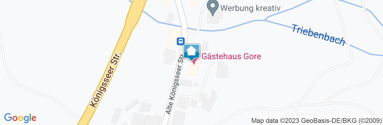 Von München A8 fahren Sie Richtung Bad Reichenhall und nehmen die Ausfahrt Richtung Bad Reichenhall/Berchtesgaden (Bei Weiterfahrt VIGNETTENPFLICHT!). Beim Kreisverkehr am Bahnhof Berchtesgaden fahren Sie Richtung Königssee, nach ca. 3 Kilomerter links abbiegen - Königssee/Schwöb und auf der rechten Seite finden Sie unser Haus Gore.