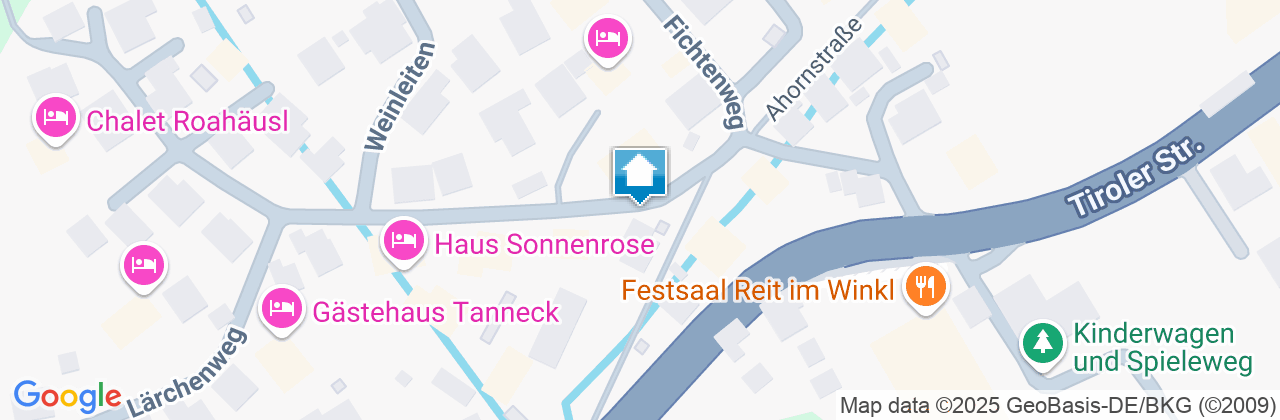 Verlassen Sie die Autobahn A8 München-Salzburg an der Ausfahrt Bernau und biegen Sie links ab in Richtung Grassau - Marquartstein und von dort weiter in Richtung Reit im Winkl. Dort angekommen fahren Sie in das Dorf Richtung Kirche hinein. Dann biegen Sie am Vinzenzmur nach rechts ab in die Tiroler Straße. Sie fahren auf dieser Straße bis zum Festsaal dort gegenüber biegen Sie nach Rechts ein. Auf dieser Straße bleiben Sie dann. Nach ungefähr 500m biegen Sie links ab.