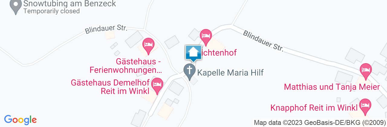 Unser Feichtenhof liegt im Reit im Winkler Ortsteil Blindau in ruhiger und sonniger Lage mit freiem Blick auf das voralpenländische Bergpanorama. Leichte bis anspruchsvolle Wanderwege im Sommer sowie Langlaufloipen und ein Kinderskigebiet mit Snowtubing Anlage im Winter befinden sich nur ca. 100m vor unserem Haus. Auch der Ausgangspunkt zum Berggasthof Hindenburghütte mit dem dazu gehörigen ausgezeichneten Premiumwanderweg „Hemmersuppenalm“ und einer Winterrodelbahn sind in ca. 5 Minuten Gehzeit zu erreichen. Unsere kleinen Gäste können den Kinderspielplatz oder einen kleinen Teich der zum Enten füttern einlädt in unmittelbarer Umgebung nutzen. Wir bieten ihnen ruhige, gemütliche Ferienwohnungen mit Balkon und traumhafter Aussicht für 1-5 Personen. Unsere große Liegewiese mit Grillmöglichkeit und Gartenhaus versprechen entspannte Abende. In unserem Freizeitraum können sie unsere Fitnessgeräte nutzen. Für Abende in gemütlicher Runde oder für kleine Feiern gibt es einen Aufenthaltsraum in urigem Ambiente. Ihre Kinder können nach Herzenslust die hauseigenen Spielsachen und Gartenspielgeräte ausprobieren. Ihr Vorteil als unser Gast: Wir sind Partner-Vermieter/Betrieb der Reit im Winkl Schwimm-Card. Sie haben dadurch die Möglichkeit, zusätzlich zu unseren eigenen Leistungen weitere kostenlose Leistungen zu erhalten, wie z.B. freien Eintritt im Freibad Reit im Winkl, im Kössener Waldschwimmbad sowie an den Strandbädern am Walchsee.Des Weiteren sind Wir Partner-Vermieter/Betrieb der Benz- Eck Skilifte. Sie haben dadurch die Möglichkeit, weitere kostenlose Leistungen zu erhalten, wie z.B. im Winter Freie Fahrt an den Benzeckliften. (EUR 1,00 Kostenbeitrag) Wir würden uns freuen, Ihnen Ihren erholsamen Urlaub ermöglichen zu können. Für weitere Auskünfte stehen wir Ihnen gerne zur Verfügung. Auf ihr Kommen freut sich ihre Familie Mühlberger.