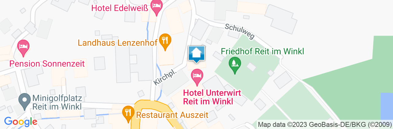 Verlassen Sie die Autobahn A8 München-Salzburg an der Ausfahrt Bernau und biegen Sie links ab in Richtung Grassau - Marquartstein und von dort weiter in Richtung Reit im Winkl. Dort angekommen über die Dorfstraße direkt hinter der Kirche.