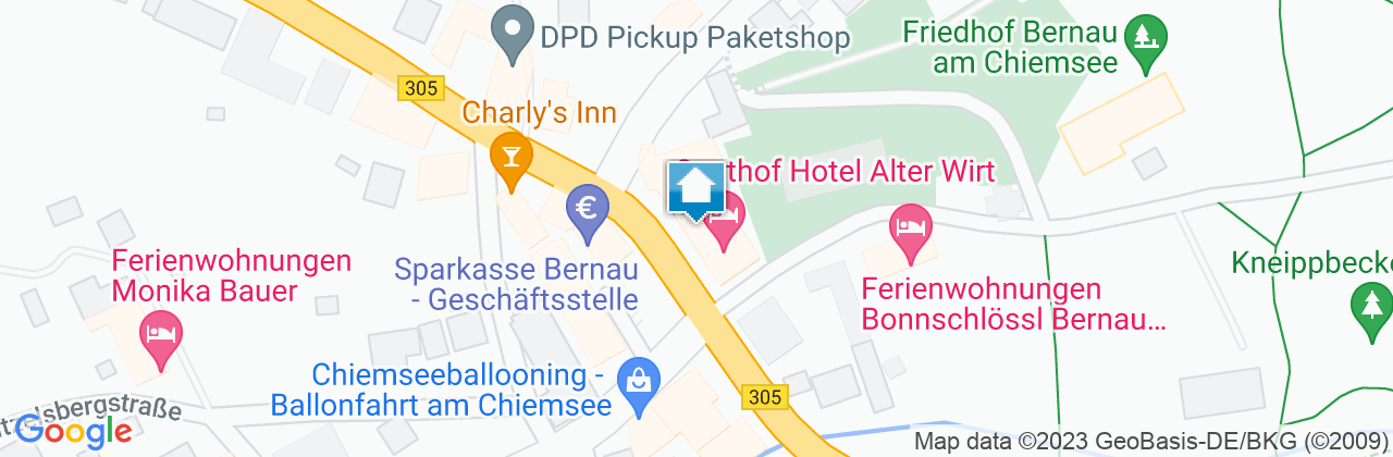Lage/Besonderheiten: Traditionsreicher, unter Denkmalschutz stehender, 700 Jahre alter Gasthof, der in der 3. Generation von Fam. Stolz geführt wird. Genießen Sie gutbürgerliche Küche in 2 Restaurants, der alten Zirbelstube und schattigem Biergarten. Eine Metzgerei mit eigener Schlachtung ist auch vorhanden. Der Gasthof liegt in der Ortsmitte mit Anschluss an den Kurpark. Ausstattung: Die Gästezimmer sind mit handbemalten Bauernmöbel verziert.Es gibt eine Dusche, ein WC, TV, Telefon und ein Radio. Entspannte Urlaubstage finden Sie in unserem familiengeführtem Gasthof im Herzen von Bernau am Chiemsee. Erleben Sie bayerische Gemütlichkeit in einen unserer gemütlichen Stuben. Wir verwöhnen Sie mit regionalen, internationalen sowie bayerischen Gerichten. Im schattigen Biergarten unter Kastanienbäumen, schmeckt eine Maß Bier mit einer Brotzeit besonders gut. Entdecken Sie den Chiemsee und Chiemgau auf den zahlreichen Rad- und Wanderwegen. Entspannen Sie an den schönen Stränden rund um den Chiemsee oder seien Sie sportlich aktiv z.B. beim Nordic Walking, Segel, Surfen, Golfen oder Klettern. Hier findet jeder das richtige für erholsame Urlaubstage. Entspannte Winterurlaubstage in Bernau verspricht unser familiengeführter Gasthof im Herzen von Bernau. In unserem traditionsreichem Haus finden Sie das passende Ambiente für einen genussvollen Urlaub. Erkunden Sie unsere herrliche Winterwanderwege zu Fuß mit Schneeschuhen oder Skiern in wunderschöner Landschaft zwischen Berg und See. Rassige Rodelbahnen befinden sich in nächster Umgebung, ob mit Lift oder zu Fuß die Abfahrt ist ein tolles Erlebnis für Jung und Alt. Sie erreichen in nur ca. 30 min Autofahrt große Skigebiete wie Steinplatte (30 km), Hochkössn (27 km) oder St. Johann (32 km). In der Nähe finden Sie schöne Langlaufloipen oder besuchen Sie die Biathlon-Veranstaltungen in Ruhploding. Der Chiemsee ist auch im Winter eine Reise wert.