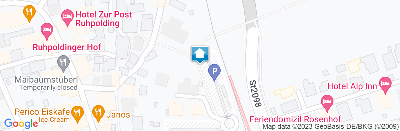 Liebe Gäste, unsere modern eingerichtete Ferienwohnung ist für 2 - 4 Personen ausgelegt und befindet sich im Herzen Ruhpoldings, dennoch liegt sie ruhig und abseits vom Straßenlärm, sodass einer erholsamen Nacht nichts entgegensteht. Die Wohnung befindet sich im ersten Stockwerk. Von dem geräumigen, mit Tisch und Stühlen ausgestatteten Südbalkon bietet sich Ihnen ein schöner Blick auf unsere umliegenden Berge. Im Sommer steht für Sie ein Tischgrill bereit. Insgesamt verfügt die Wohnung über 65 qm Wohnfläche. Ruhe finden Sie in 2 separaten Schlafzimmern. An den Fenstern befinden sich Rollläden, damit Sie auch tagsüber ruhen können und bei Hitze die Sonnenstrahlen ferngehalten werden. In einem Schlafzimmer befindet sich ein Safe und Verbandskasten. Die Doppelbetten haben rückengerechte Matratzen (1,00 m x 2,00 m) bzw. das zweite Schlafzimmer 0,90 m x 2,00 m. In beiden Zimmern befinden sich noch Ersatzhandtücher und wenn es einmal kühler wird, auch Wolldecken. Die Schränke sind reichlich groß, sodass Sie Ihre Kleider gut verstauen können. Bei Bedarf können wir ein Kinderreisebett zur Verfügung stellen. Unsere Wohnküche besteht aus einer Küchenzeile mit E-Herd und Backofen, Dunstabzug,Heißluftfritteuse, Kaffeemaschine mit Filterpapier, Wasser- und Eierkocher, Toaster, Töpfe und Pfannen, reichlich Geschirr sowie mit allen benötigten Kochutensilien, wie Geschirrtücher, Spülmittel und Putzartikel. Esstisch bei Bedarf mit Kinderhochstuhl. Zum gemütlichen Ausklang des Tages können Sie auf der Couch verweilen, TV-sehen oder Radio hören. Natürlich steht für Sie ein freies WLAN zur Verfügung. Das Bad ist mit Dusche, WC,Toilettenpapier,Fön und Seife ausgestattet. Natürlich liegen Hand- und Duschtücher für Sie bereit. Ebenfalls gehört zur Ferienwohnung ein Stellplatz für Ihr Auto und ein Ski-Abstellraum. Zug- und Busverbindungen sind in unmittelbarer Nähe. Abends können Sie zu Fuß in unserem Dorf flanieren, ohne dass Sie ein Auto benötigen. Bitte haben Sie Verständnis, dass wir keine Haustiere aufnehmen. Wir freuen uns, Sie in unserem Haus begrüßen zu dürfen.