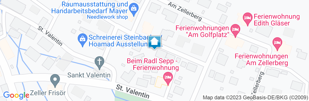 Kommend von der A8, fahren Sie durch Ruhpolding bzw. den Tunnel, beim Kreisverkehr Ausfahrt Reit im Winkl, an der Ampelanlage biegen Sie links in die Zeller Straße ab, der Vorfahrtsstraße folgen, im Ortsteil St. Valentin links abbiegen, nach der Kirche wieder links dann die nächste Straße gleich rechts rein.