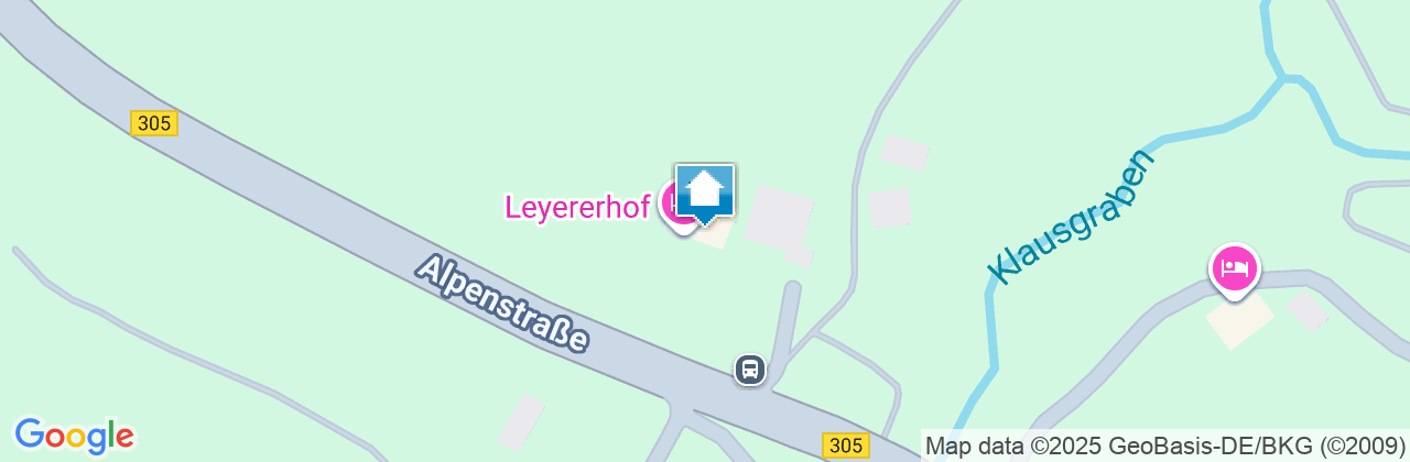 Autobahn A8 München- Salzburg bis Ausfahrt Siegsdorf/Traunstein, weiter auf der B306 Richtung Berchtesgaden, über Inzell, Weißbach bis Unterjettenberg, von dort auf der B305 über Gasthaus Wachterl ca. 1,8 km weiter geradeaus. Der Leyererhof liegt als 1. Haus auf der linken Seite.