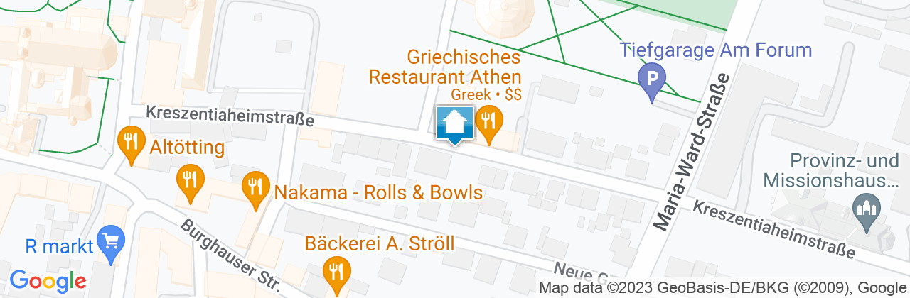 Vom Inneren Ring, Maria-Ward-Str. aus kreuzt die Kreszentiaheimstrasse rechts und links.