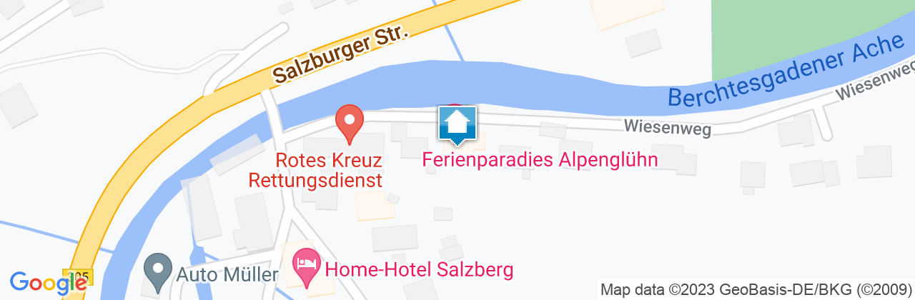 Come trovarci: In auto, in treno o in aereo, molte strade portano al paradiso delle vacanze Alpenglühn. L'aeroporto di Salisburgo è a soli 15 km di distanza / la stazione centrale di Salisburgo a 20 km. La stazione ferroviaria di Berchtesgaden è a soli 15 minuti a piedi dal Ferienparadies Alpenglühn. La fermata dell'autobus (Königsallee) dista solo 200 metri.