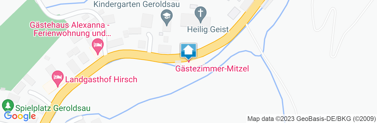 Von der A5 kommend, die Ausfahrt Baden-Baden nehmen und dem Zubringer in Richtung B500 / Freudenstadt folgen. Nach dem Tunnel an der ersten Ampel rechts abbiegen und am Ende der Querstraße links. Weiter in Richtung B500 Freudenstadt. An der nächsten Kreuzung rechts abbiegen in die Geroldsauer Straße. Nach ca. 2 km befindet sich das Ziel auf der linken Seite.