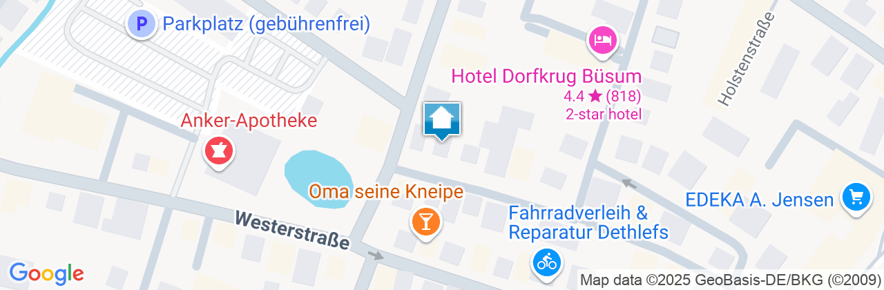 Das Zweifamilienhaus Ole Dün in der Bergstraße 20 liegt mitten im alten Kern von Büsum und ist nur wenige Minuten Fußweg vom Hafen, der Fußgängerzone und dem Strand entfernt. Die Fußgängerzone ist 200m entfernt, der Hauptstrand 300m, zum Schwimmbad sind es 400m, zum Bahnhof 800m und zur Familienlagune Perlebucht ca. 1000m.