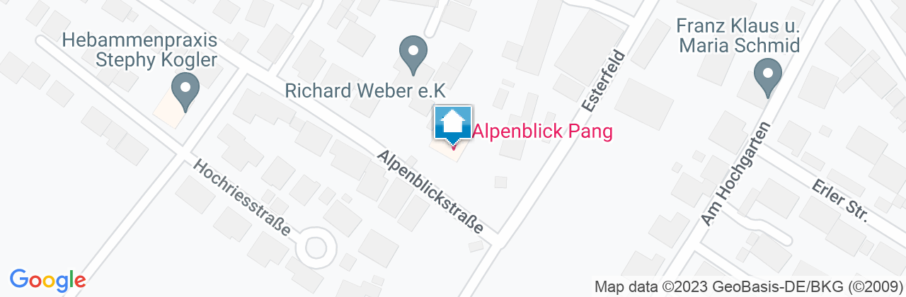 Im Sommer sind Kälber auf der angrenzenden Wiese. Die Unterkunft liegt am äußersten Südrand des ehemaligen Dorfes Pang (jetzt von Rosenheim eingemeindet). Diese ist sehr ruhig, sonnig und hell gelegen.