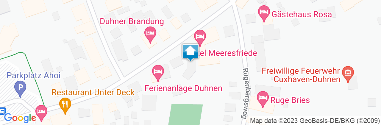 Das Appartementhaus liegt direkt im Ortskern von Duhnen. Der Duhner Sandstrand sowie das Thalassozentrum 'ahoi!' sind nur ca. 150 m entfernt. Restaurants und Einkaufsmöglichkeiten sowie Arzt, Apotheke und Bäcker sind in wenigen Gehminuten zu erreichen. Der Fahrradverleih befindet sich auf der gegenüberliegenden Straßenseite.