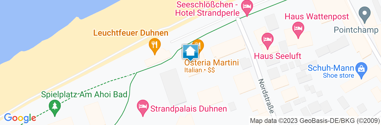 Die Promenade und der Strand können über einen kleinen Privatweg – ohne Publikumsverkehr – in nur wenigen Schritten erreicht werden. Die im Landhausstil, sehr hochwertig eingerichtete Ferienwohnung, bietet mit einem ausziehbaren Schlafsofa im Wohnzimmer und separaten Schlafzimmer mit Doppelbett genügend Platz für drei Personen.