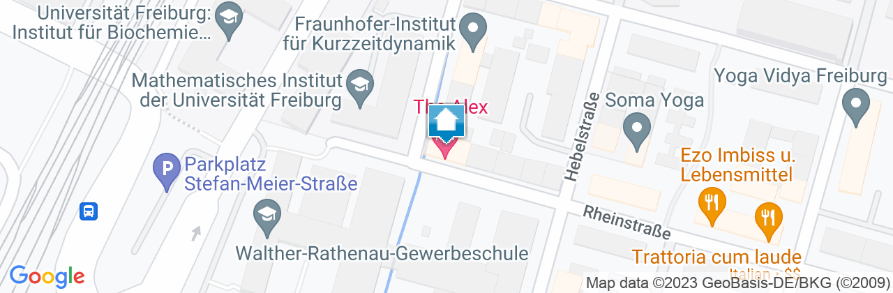 Per Shuttlebus: Nehmen Sie den Shuttlebus direkt bis Freiburg (Hauptbahnhof), gehen Sie vom Ausgang des Hauptbahnhofs links auf die Bismarkallee, nach etwa 300 m überqueren Sie die Ampel und halten sich weiterhin geradeaus, überqueren Sie die Straße, um auf die rechte Straßenseite zu gelangen, gehen Sie in die Parkeinfahrt und folgen Sie dem Fußgängerweg etwa 100 Meter, unser Hotel befindet sich nach dem Fußgängerweg zu Ihrer Linken. Per PKW: fahren Sie mit dem PKW über die A5 in Richtung Karlsruhe, nehmen Sie die Ausfahrt Nr. 62 (Freiburg Mitte), nehmen Sie die 5. Ausfahrt "Stadtmitte / Hauptbahnhof" in Richtung Hauptbahnhof, fahren Sie am Hauptbahnhof geradeaus über die Ampel und biegen Sie die nächste Straße (Albertstrasse) rechts ab, biegen Sie erneut rechts ab (Eckerstraße), nach etwa 200 Metern erreichen Sie die Rheinstraße, in der sich unser Hotel zu Ihrer Linken befindet. Bitte beachten Sie, dass Sie für eine Fahrt durch Freiburg die grüne Feinstaubplakette benötigen. Diese können Sie mindestens 10 Tage vor Reiseantritt von der Stadtverwaltung Freiburg postalisch erhalten, sofern eine Plakette zugeteilt werden kann. Hierfür senden Sie einfach eine Kopie der Fahrzeugpapiere per Post oder als eingescanntes Dokument per E-Mail an buergeramt@stadt.freiburg.de und erhalten eine Rechnung über EUR 6,50 per Post. Anreise mit der Bahn: Unser Hotel befindet sich nur wenige Gehminuten vom Hauptbahnhof entfernt: gehen Sie vom Ausgang des Hauptbahnhofs links auf der Bismarkallee, nach etwa 300 m überqueren Sie die Ampel und halten sich weiterhin geradeaus, überqueren Sie die Straße, um auf die rechte Straßenseite zu gelangen, gehen Sie in die Parkeinfahrt und folgen Sie dem Fußgängerweg etwa 100 Meter, unser Hotel befindet sich nach dem Fußgängerweg zu Ihrer Linken.