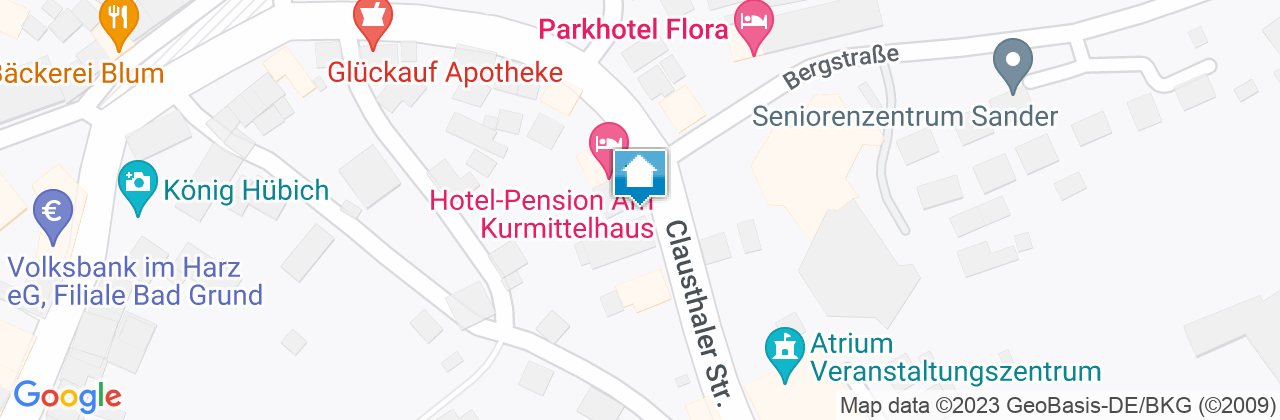 Sie wohnen in einer der reizvollsten Gegenden des Harzes, umgeben von dichten Laub- und Nadelwäldern, im heilklimatischen Luftkurort mit Heilstollentherapie, Bad Grund. Unser Haus liegt direkt gegenüber dem Kurzentrum mit Solehallenbad, Fitnesscenter und Bowlingbahn. Trotz seiner zentralen Lage erreichen Sie das Wanderwege- und Loipennetz in wenigen Minuten. Hunde sind herzlich willkommen und kostenfrei. Zur Messe nach Hannover sind es ca. 80 Km. Vom Hotel gelangen Sie nach 500m Landstraße auf die B 242, von dieser auf die B 243 und haben nach ca. 12 Km die Autobahn A7, die Sie bis zum Messegelände bringt, erreicht.