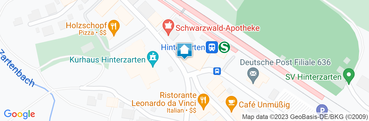Mit der Bahn: Klicken Sie auf den DB-Button und gelangen Sie direkt zur Eingabemaske mit dem Zielbahnhof: Hinterzarten. Mit dem Auto auf der A5 Karlsruhe-Basel: Ausfahrt Freiburg Mitte auf die B31 in Richtung Donaueschingen Auf der A81 Stuttgart-Singen: Ausfahrt Donaueschingen auf die B31 Richtung Freiburg. Mit dem Flugzeug: Zürich ca. 90 km, Basel-Mulhouse ca. 100 km, Straßbourg ca. 120 km, Stuttgart ca. 180 km,Frankfurt ca. 310 km