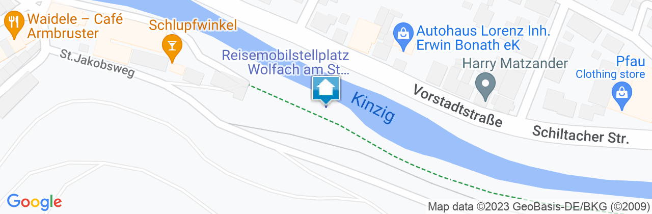 Der Wohnmobilstellplatz liegt am Stadtrand direkt an der Kinzig.