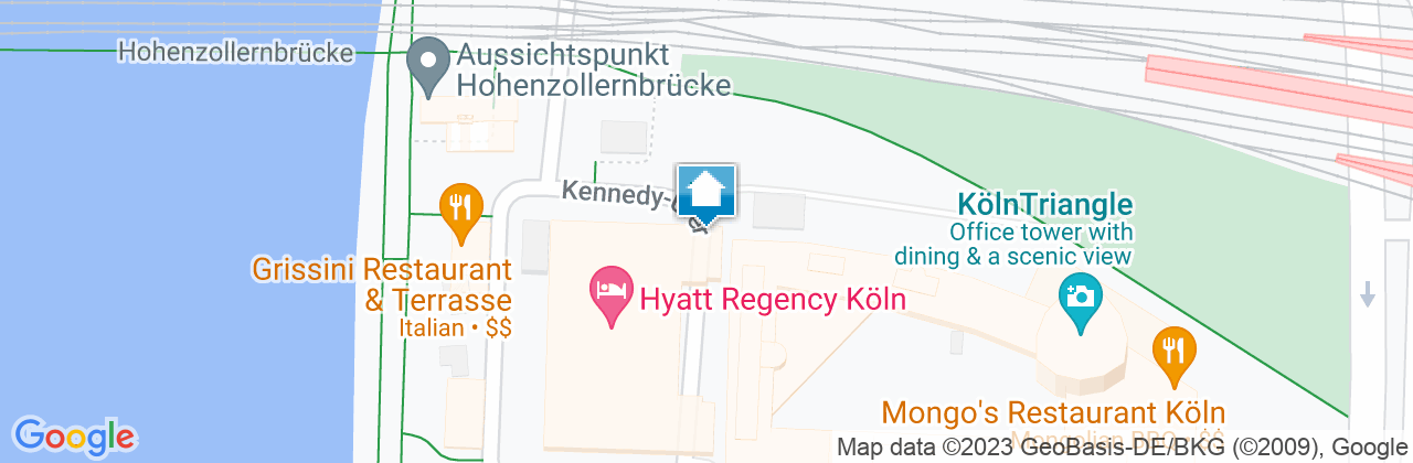 Das Hyatt Regency Köln befindet sich in einzigartiger Lage direkt am Rhein gegenüber des Doms, nur wenige Gehminuten vom Hauptbahnhof und der LANXESS arena entfernt. Das Hotel verfügt über 306 neu renovierte, mit modernsten technischen Einrichtungen ausgestattete Zimmer und Suiten in edlem Design. Frisches Obst, Mineralwasser sowie Kaffee und Tee zur eigenen Zubereitung stehen kostenfrei zur Verfügung. Genießen Sie einen herrlichen Ausblick auf den Rhein sowie exklusiven Service im Glashaus Restaurant, der Schälsick Bar und im Puls Fitness Club & Spa. Zur Homepage Ihres Gastgebers: www.cologne.regency.hyatt.de