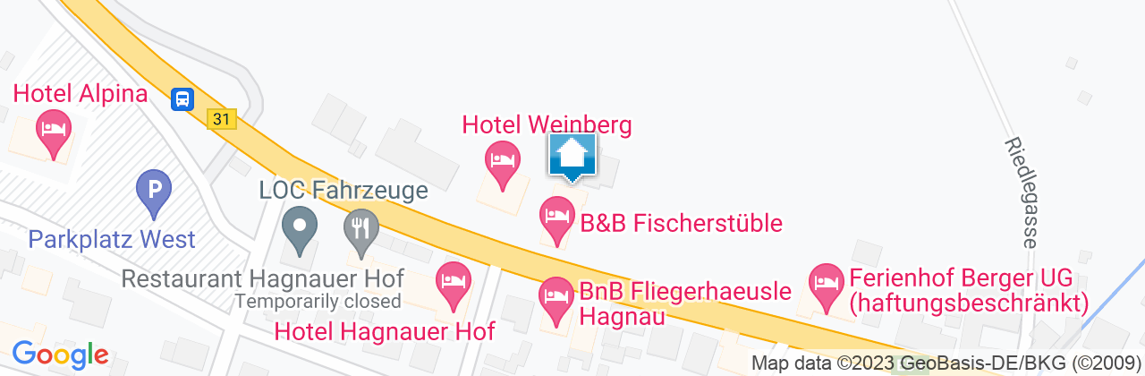 Lage direkt an der B31, 200 Meter zur Bushaltestelle und ca. 5 Gehminuten zum See.