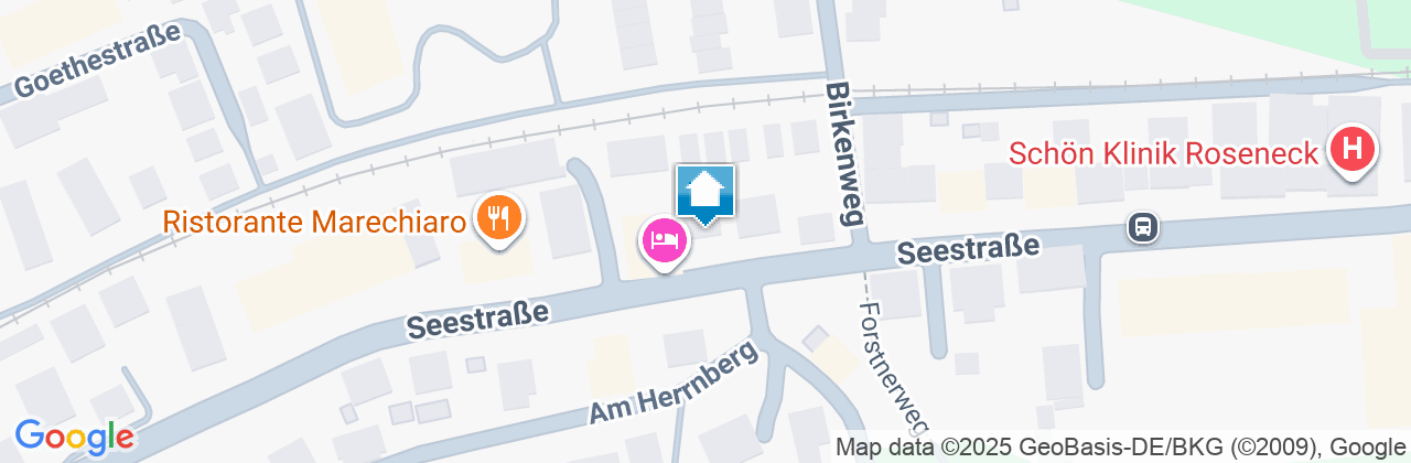 Von unserem komfortablen Gästehaus mit persönlicher Atmosphäre erreichen Sie in 5 Gehminuten die Seepromenade, die Klinik Roseneck und St. Irmingard sowie das Erlebnisbad "Prienavera", zur Ortsmitte benötigen Sie 10 Gehminuten.