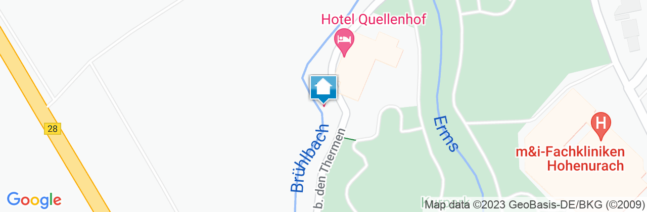 Mitten im Kurgebiet, nahe der Therme und den Kliniken. Die Bushaltestellen und der Bahnhof "Wasserfall" sind fußläufig erreichbar.