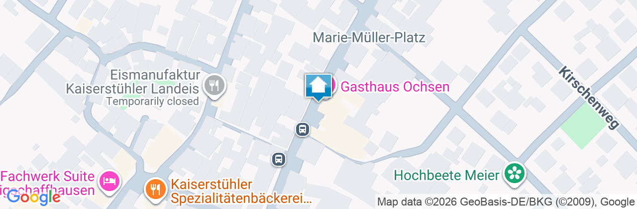 Seit Jahrzehnten verwöhnt Familie Haßler Ihre Gäste mit gutbürgerlicher, ehrlicher Küche im Gasthaus „Zum Ochsen“ mit hauseigener Metzgerei, im schönen Winzerdorf Königschaffhausen. Hier kocht der Chef noch selbst. Es wird serviert, was die Region im Wechsel der Jahreszeiten zu bieten hat, im Sommer im lauschigen Innenhof, im Winter am warmen Kachelofen. Zusätzlich bietet ein großer Festsaal und ein separates Kaminzimmer ausreichend Platz für Veranstaltungen jeglicher Art, bis zu 140 Personen. Das angrenzende Gästehaus verfügt über 5 Doppelzimmer mit Dusche/WC, W-Lan und TV. Überdachte Stellplätze für Autos und Motorräder sind vorhanden, sowie ein Abstellraum für Fahrräder