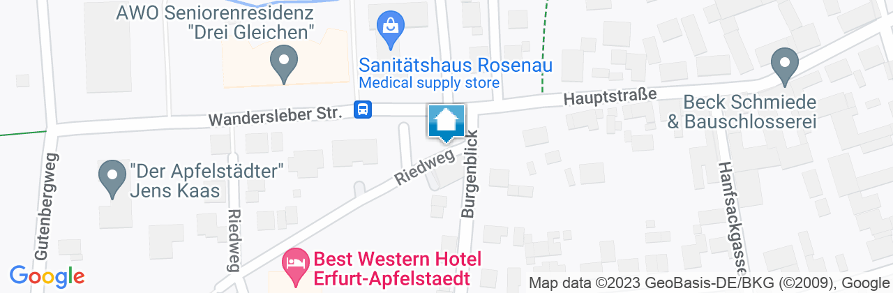 Mitten im Herzen Thüringens, in der herrlichen Burgenlandschaft der "Drei Gleichen“, befindet sich das Hotel mit direkter Anbindung zur A4 und A71 (ca. 3 km Entfernung). Die Thüringer Landeshauptstadt Erfurt erreichen Sie in wenigen Minuten. Durch die günstige Lage zu den Städten Erfurt, Eisenach, Gotha, Weimar und Arnstadt bietet sich hier ein landschaftlich eindrucksvolles Bild und ein zentraler Punkt für Erholung und ausgedehnte Touren durch das gesamte Thüringer Land. Unsere Zimmer sind stilvoll eingerichtet und wurden im Frühjahr 2020 renoviert. All unsere Zimmer bieten ein Wohlfühlen auf 20 bis 48 m², Badewanne oder Dusche/WC, teilweise Klimaanlage, Telefon, gratis WLAN, Flatscreen-TV und Radio, Zubereitungsmöglichkeiten für Kaffee und Tee, Bügelbrett mit Bügeleisen, Fön und reichhaltiges Frühstücksbuffet an.Konditionen/Extras
