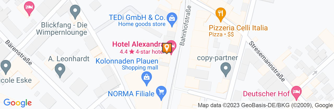 Zurück zur Ergebnisliste Hotel Alexandra: Dinner - 3-Gang-Menü Teilen Share Tweet E-Mail Pin Share Informationen Verfügbarkeiten und Preise Anreise Weitere Informationen Stornierungsbedingungen keine kostenfreie Stornierung möglich / nicht erstattbar Zahlungsbedingungen 100% bei Buchung Verkaufsinformation Genießen Sie bei Ihrem "Urlaub in Deiner Stadt" unser Abendessen als 3-Gang-Menü (exkl. Getränke). Karte Route berechnen Anreise Route anzeigen Zurück zur Ergebnisliste