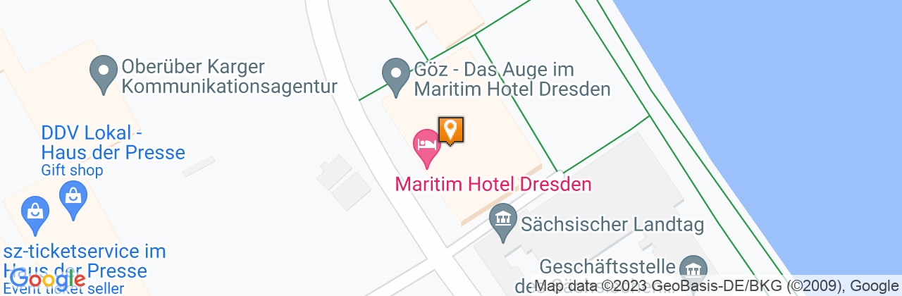 Back to result list Maritim Hotel Dresden: Dinner - 3-Gang-Menü oder Buffet Share Share Tweet E-Mail Pin Share Information Availabilities & prices Google Maps More information Cancellation policy no free cancellation possible / no refund Payment policy 100% upon booking Information Genießen Sie die Spezialitäten aus dem Maritim Hotel Dresden entweder als 3-Gang-Menü oder als Buffet (zzgl. Getränke) zum Vorzugspreis. Getting there Calculate the route Arrival Google Maps Back to result list